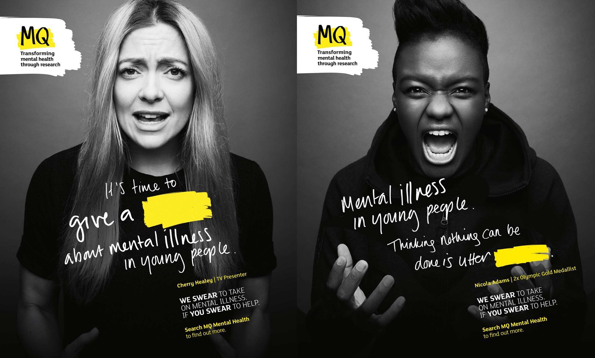 The stats on mental health issues in the young are staggering. It's frustrating that nothing seems to be done, that there seems to be no solution. MQ, a new charity was created to help fund scientific research with the aim of actually curing mental health issues. They needed to connect their aims to the general public. So I gave people to chance to stop swearing in frustration about our mental health crisis and start swearing to help with MQ.