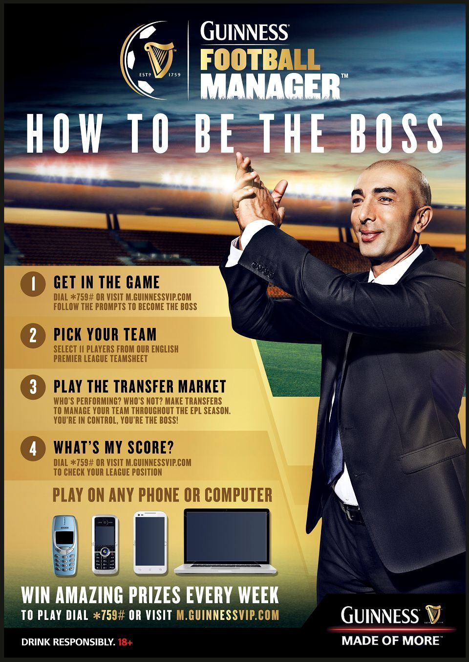 Guinness and football are joined at the hip in Africa. And Guinness celebrated this by helping fans get more from the experience by creating their own RAISE YOUR GAME campaign allowing true supporters to play manager online, on mobile and in an actual TV show, making every match feel more than a spectator sport. As ECD.